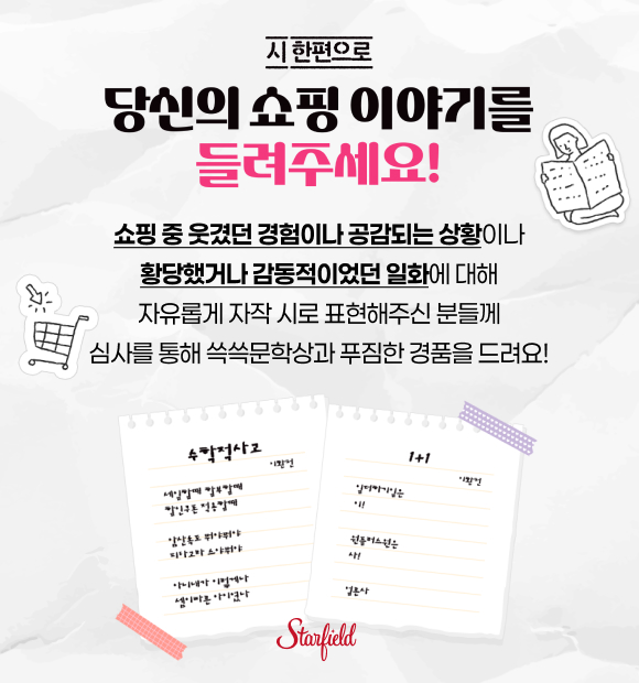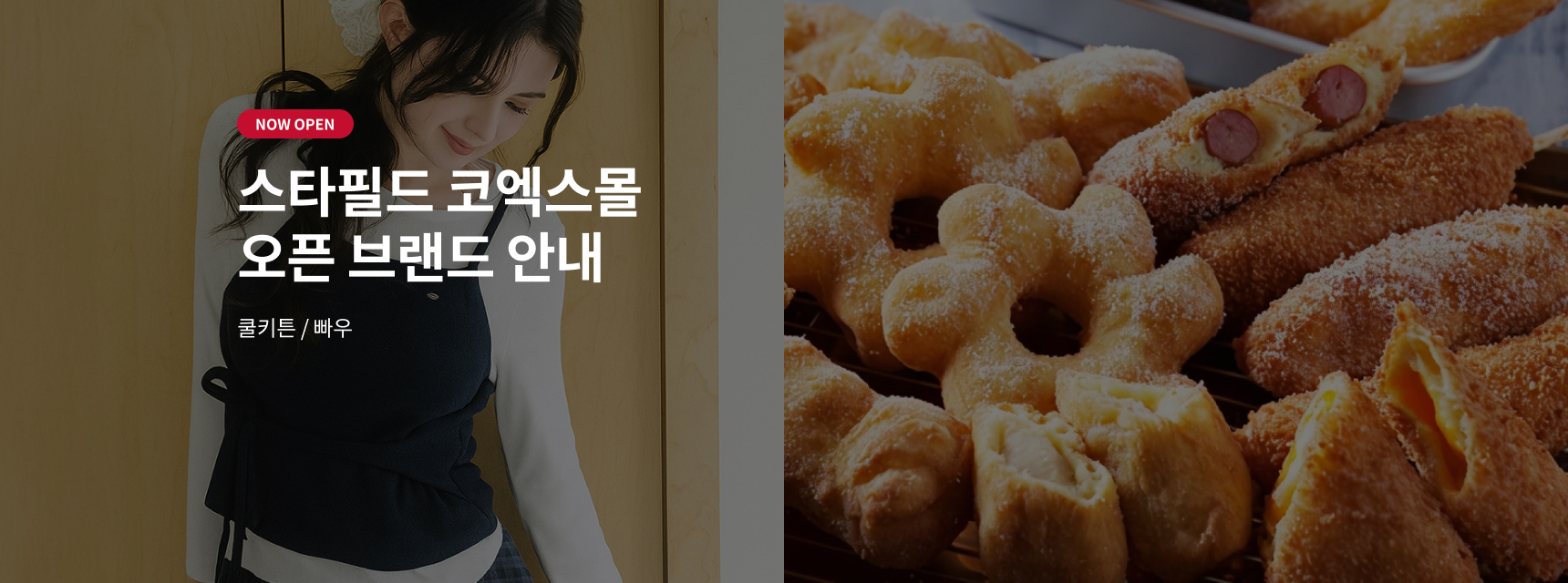 스타필드 코액스몰 모바일 웹사이트 바로가기 > at STARFIELD COEXMALL 스타필드 코엑스몰의 이벤트&쿠폰 10월의 별마당 도서관 소식 10월의 별마당 도서관 소식 09.29(월) - 10.31(금) 스타필드 코엑스몰 10월의 브랜드 행사 스타필드 코엑스몰 10월의 브랜드 행사 10.01(수) - 10.31(금) 스타필드 코엑스몰 10월의 이벤트&혜택 스타필드 코엑스몰 10월의 이벤트&혜택 10.01(수) - 10.31(금) 코엑스몰 SO클럽 서비스 안내 코엑스몰 SO클럽 서비스 안내 01.01(월) - 12.31(화) 책으로 소통하는 문화 감성 공간 별마당 소식 시처럼 음악처럼 낭만 가득한 삶“ 별마당 도서관 소식” 별마당 소식 보기 별마당 아트 프로젝트 별마당 도서관의 가치와 철학을예술 작품으로 표현합니다. 별마당 아트 프로젝트 보기 별마당 도서관 스토리 가슴에 별을 품은 이들을 위한 다양한 이야기“별마당 도서관 공식 SNS 채널” 별마당 도서관 스토리 보기 SPECIAL FIELD 스타필드 코엑스몰만의 특별한 공간 BEST CAMPAIGN 스타필드 대표 행사 스타필드, ‘세상에서 가장 큰아이’대한민국 광고대상 ‘대상’ 수상! 지금까지 이런 축제는 없었다!스타필드 쓱데이 페스티벌! 스타필드 하남, 국내 쇼핑몰 최초‘LG U+ 3쿠션 마스터스 대회’ 개최 COEX 전시 코엑스에서 진행되는 다채로운 전시 전시회 일정 바로가기