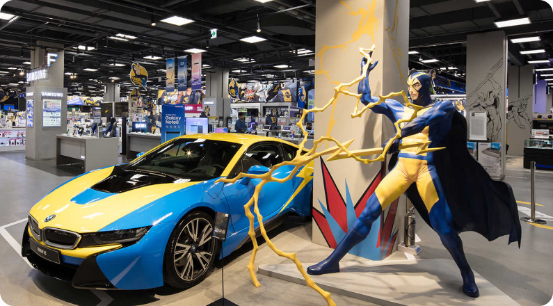 드론, 액션캠, 스마트기기 체험존은 기본. 가전, 취미, 추억을 소환할 오락실, 와인, 음식으로 남자가 관심 둔 모든 체험을 제공합니다. 수제 버거와 남부 가정식 요리 등 약 500㎡(150평) 규모로 마련된 별도 F&B 공간까지 남심을 저격할 모든 콘텐츠를 갖췄습니다.