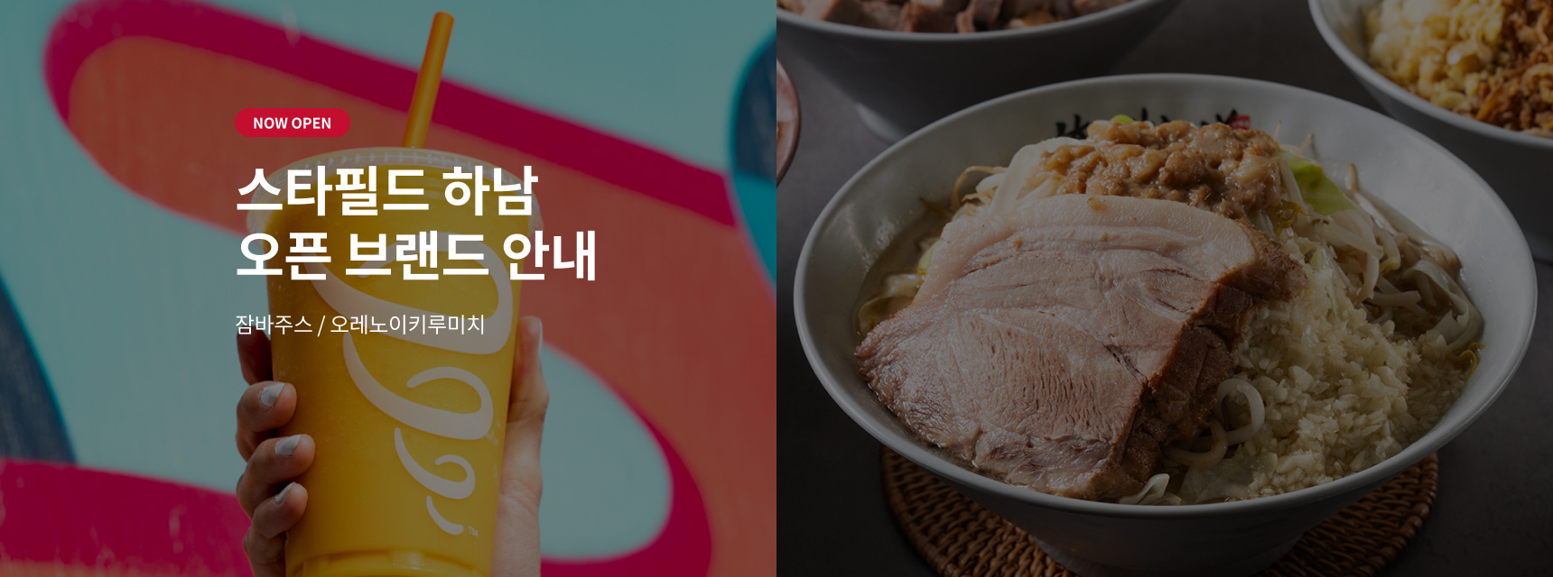 메뉴 투자정보 로그인 스타필드 하남 스타필드 하남 점포 소개층별안내카테고리 안내편의시설오시는길주차안내대관안내공간 컨텐츠 제휴 핫플레이스 핫플레이스 해외유명브랜드신세계백화점트레이더스 홀세일 클럽일렉트로마트토이킹덤몰리스 펫샵한샘자동차/모빌리티 엔터테인먼트 엔터테인먼트 아쿠아필드스몹메가박스영풍문고펫파크 레스토랑&카페 레스토랑&카페 고메스트리트잇토피아 이벤트&혜택 이벤트&혜택 이벤트쇼핑 혜택사은행사제휴카드쿠폰 고객센터 고객센터 FAQ공지사항고객문의