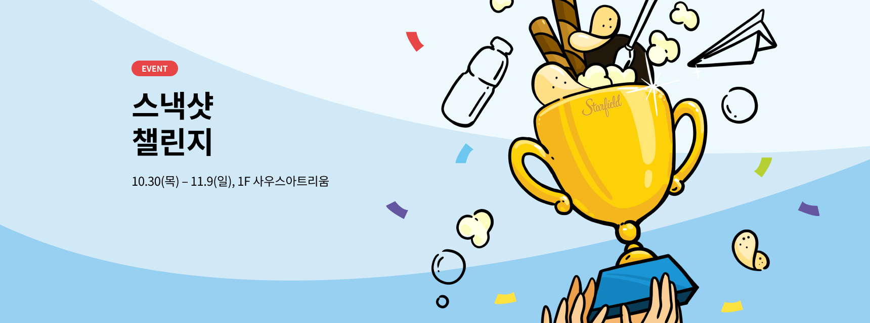 투자정보 로그인 스타필드 하남 스타필드 하남 점포 소개층별안내카테고리 안내편의시설오시는길주차안내대관안내공간 컨텐츠 제휴 핫플레이스 핫플레이스 해외유명브랜드신세계백화점트레이더스 홀세일 클럽일렉트로마트토이킹덤몰리스 펫샵한샘자동차/모빌리티 엔터테인먼트 엔터테인먼트 아쿠아필드스몹메가박스영풍문고펫파크 레스토랑&카페 레스토랑&카페 고메스트리트잇토피아 이벤트&혜택 이벤트&혜택 이벤트쇼핑 혜택사은행사제휴카드쿠폰 고객센터 고객센터 FAQ공지사항고객문의