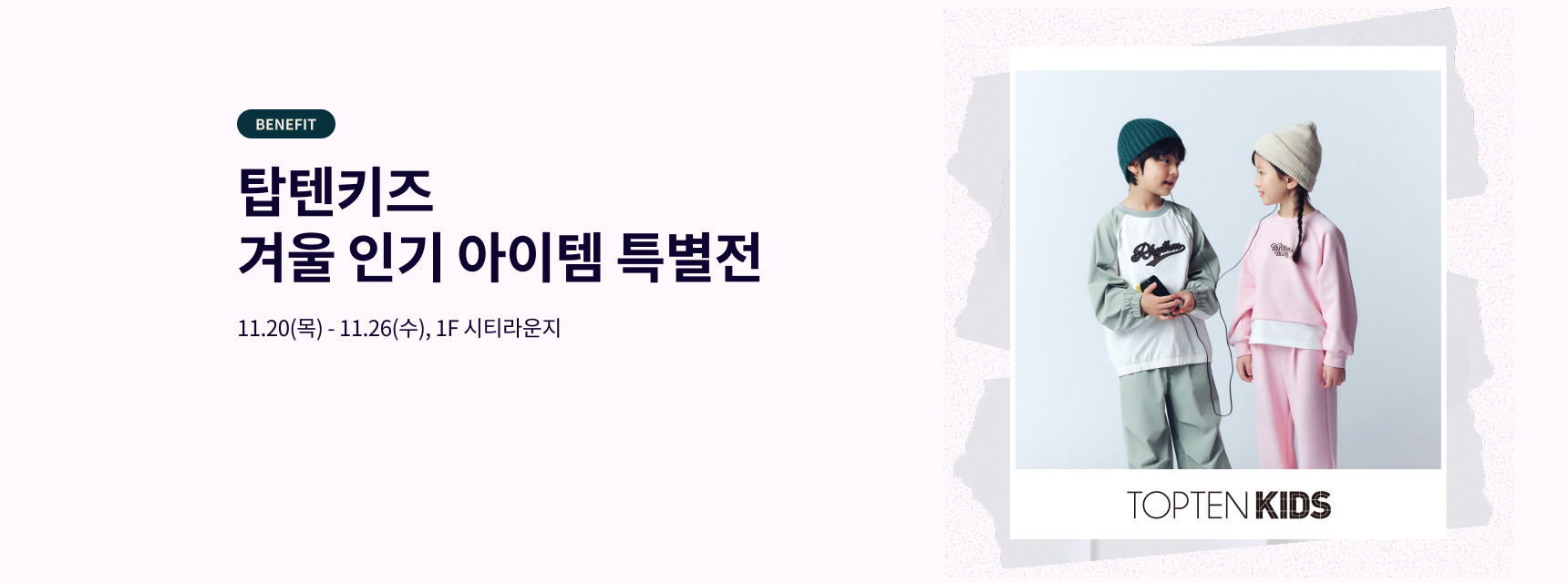 투자정보 로그인 스타필드 시티 명지 스타필드 시티 명지 점포 소개층별 안내카테고리 안내편의시설오시는 길주차 안내 주요매장 주요매장 트레이더스 홀세일 클럽JAJUBMW 맘&키즈 맘&키즈 챔피언북타운상상스케치시티라운지스타가든 레스토랑&카페 레스토랑&카페 시티마켓잇토피아카페&디저트 이벤트&혜택 이벤트&혜택 이벤트쇼핑 혜택사은행사제휴카드쿠폰 고객센터 고객센터 FAQ공지사항고객문의 컬쳐클럽컬쳐클럽