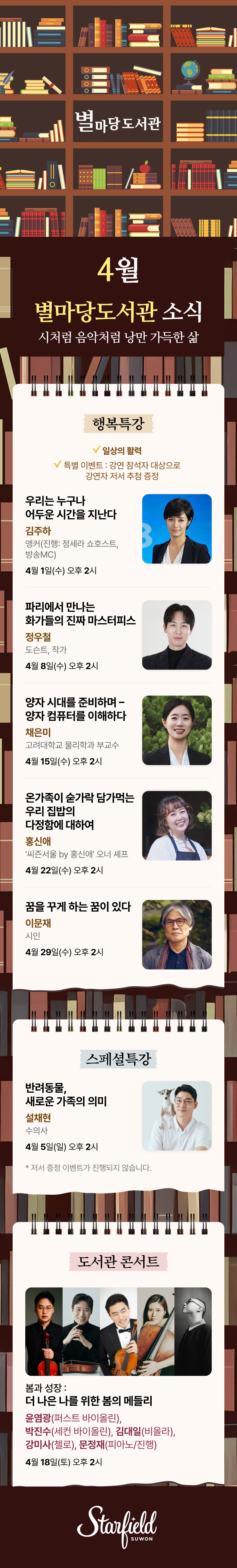 4.1(수), 4.5(일), 4.8(수), 4.15(수), 4.18(토), 4.22(수), 4.29(수)